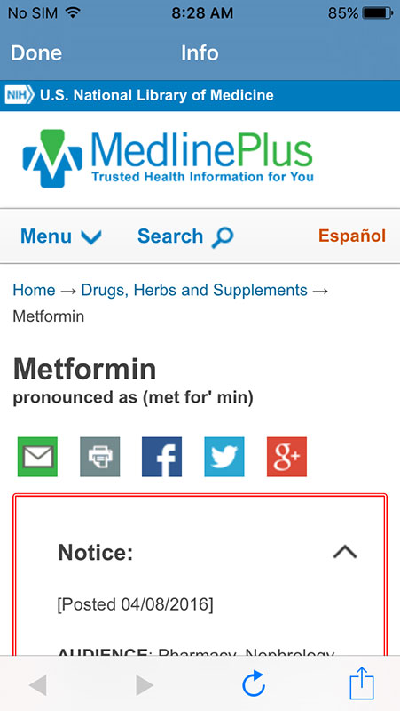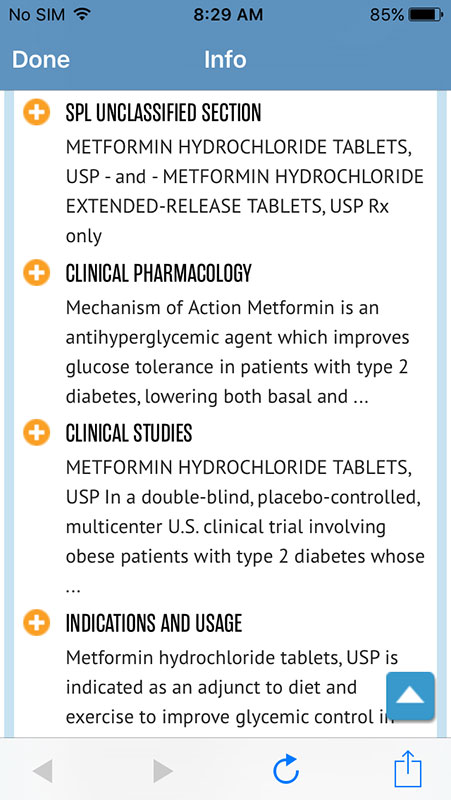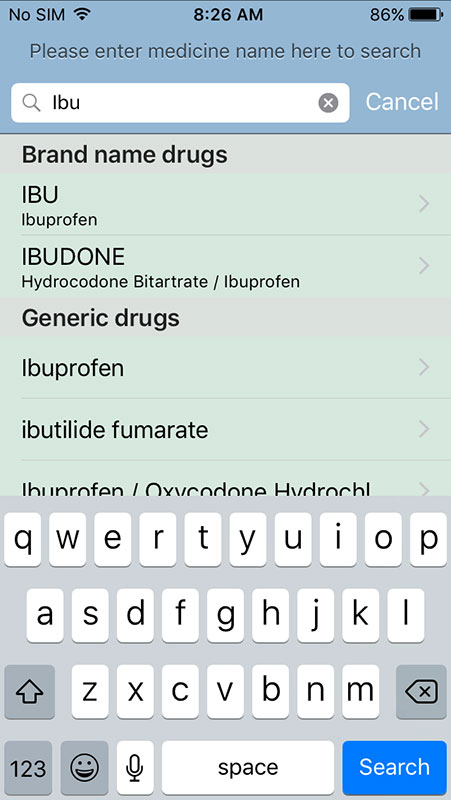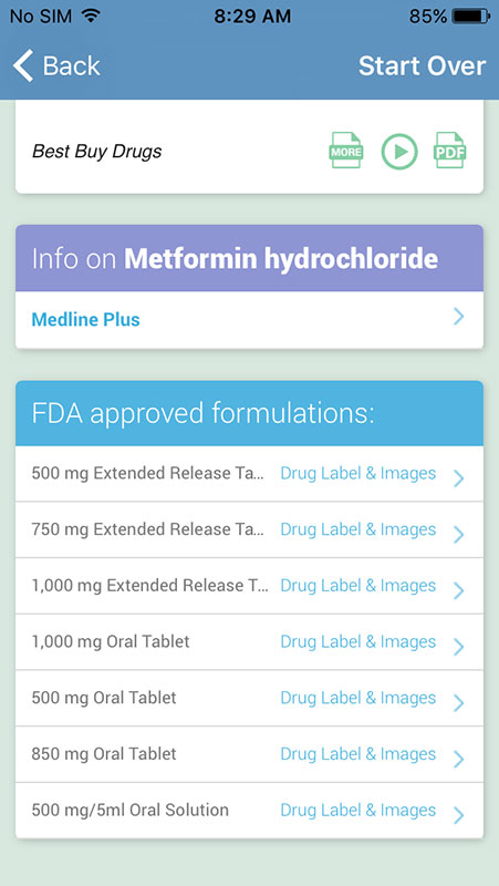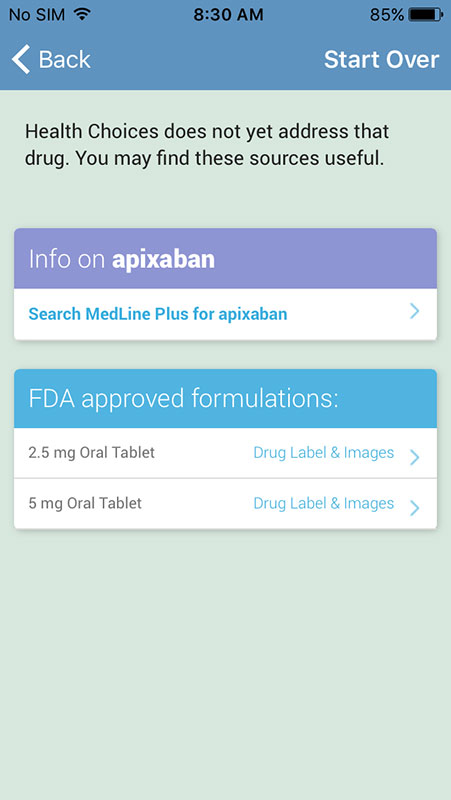 However, not every drug is covered with recommendations, but the app would still provide you with the Medline Plus link and formulation info.