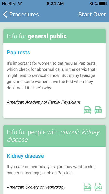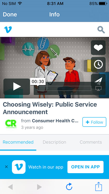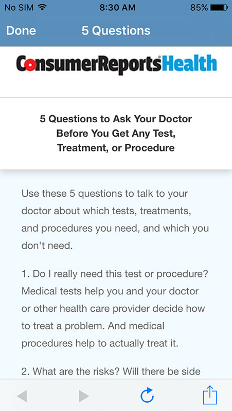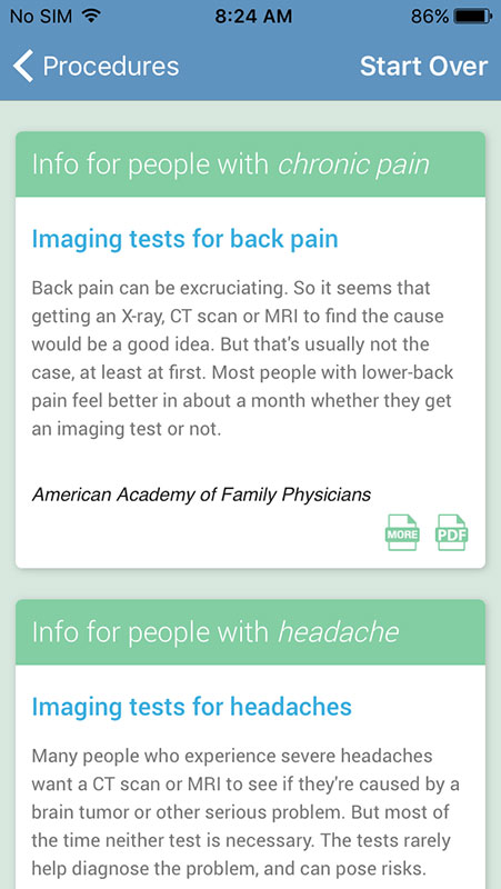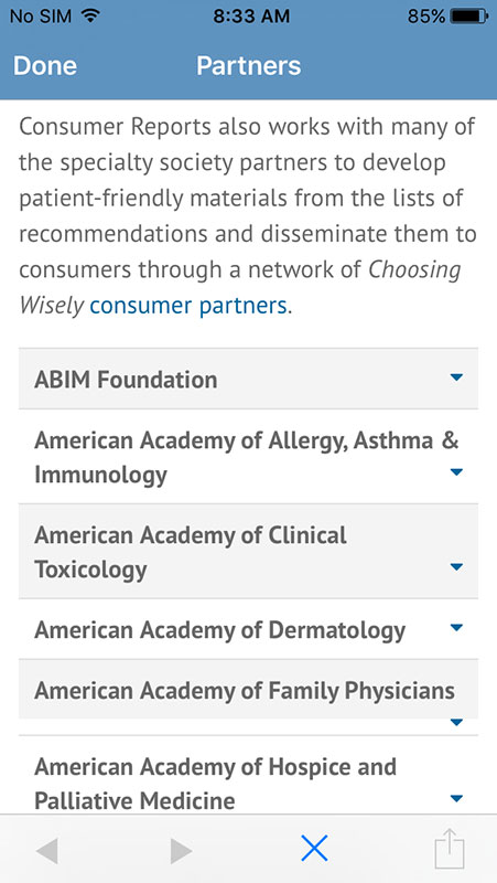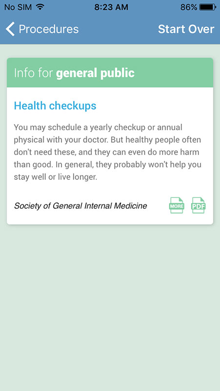 As an additional effort, Choosing Wisely and Consumer Reports have launched Making Healthy Choices app for iOS, with a goal to provide the recommendations to the patients and empower them to use less unnecessary tests and procedures.