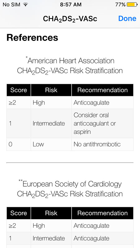 The app is based on Anticoagulation Toolkit PDF, which is available as a resource within the app. Several published guidelines, such as American Heart Association (AHA)/ACC, the European Society of Cardiology, the CHEST guidelines, including a number of clinical trials, also helped shaping the content of this app.