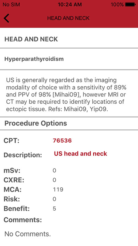 Benefit: Physicians who need guidance in selecting the most appropriate medical imaging procedure for their patient could benefit from this app