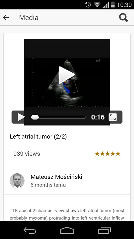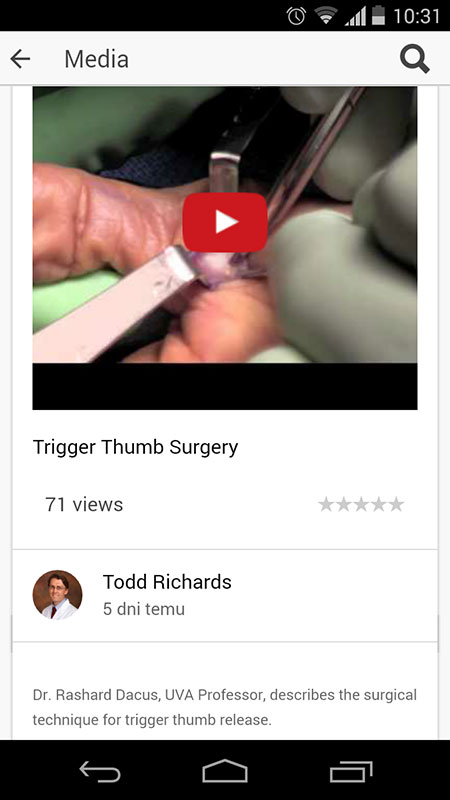 Once you select a category or a topic you've searched for, you'll get a list of related videos with a short description of what the video is about, number of view and a 5-star rating system. Videos range from short, lasting only couple of seconds, to longer, depending on the procedure or condition they described. We've noticed that the majority of the videos within the app seem to be surgery related. Also, during our review, we didn't notice any lecture based or animated medical videos, but we think that MEDtube app might benefit from them immensely.