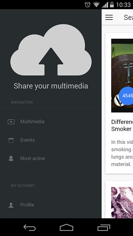 Besides videos, you can also check shared events, as well as most active channels and app users. These options can be accessed via menu button on the top left.