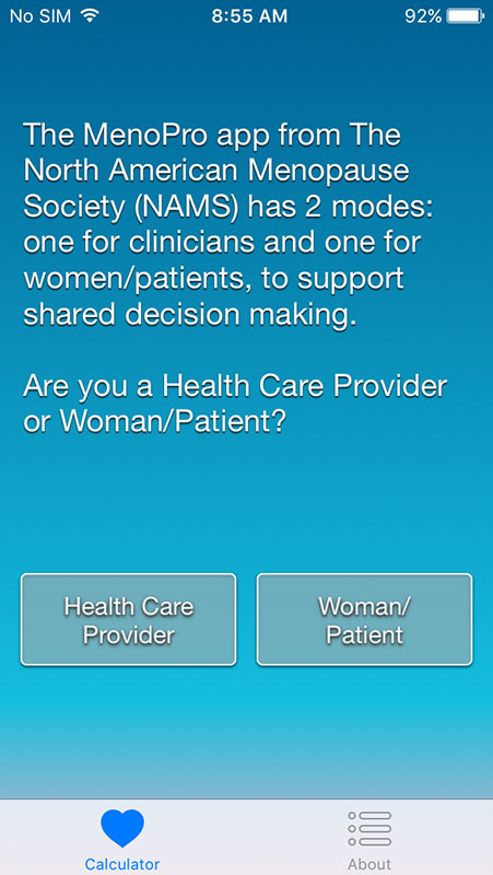 To address this issue, the North American Menopause Society (NAMS) developed MenoPro, a free mobile app for clinicians and women, with a goal to help them work together to find the optimal individual treatment for annoying menopause symptoms, based on personal preferences and risk factors.