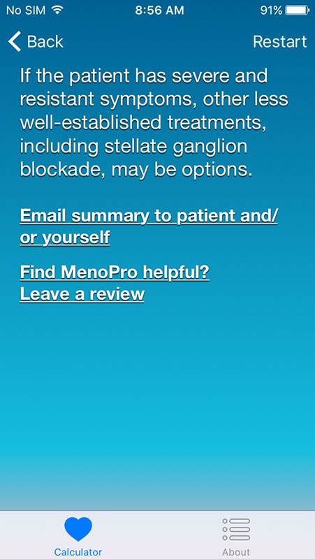 Another thing that should be noted for anyone looking for evidence-based medicine in this app is that while MenoPro app is based on evidence-based statements and guidelines, they have not been prospectively validated.