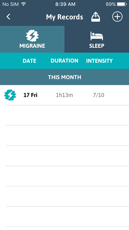 As you add records, View Reports section populates with more details that might help you better understand your migraine attacks, i.e. if they're affected by your lifestyle, sleeping patterns, or environmental triggers, the pain intensity, aura and prodrome, etc.