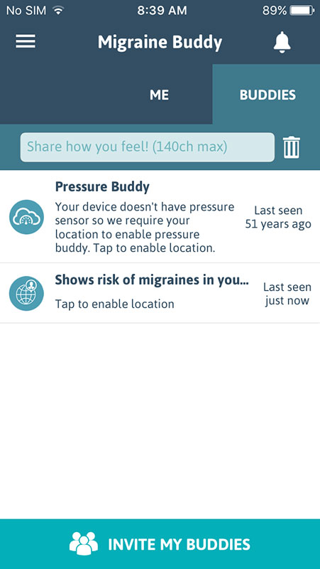 Since changes in temperature and barometric pressure could trigger migraine for many people, Migraine Buddy app can provide you information about the weather in your current locale by using your phone's location settings.