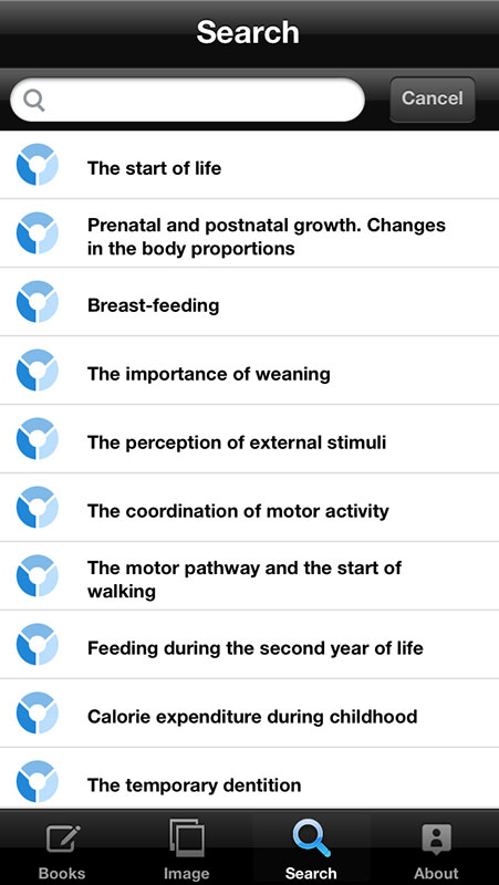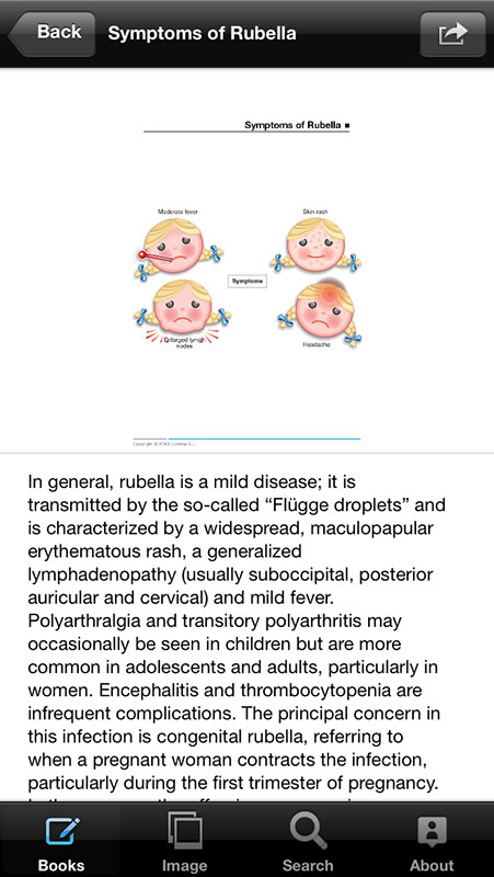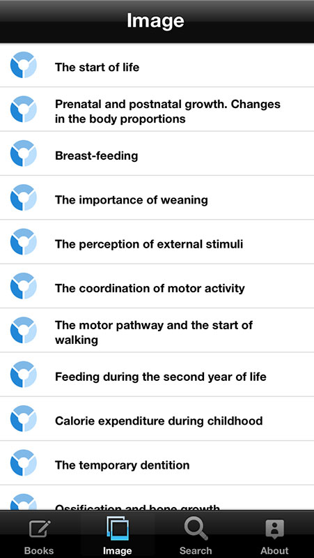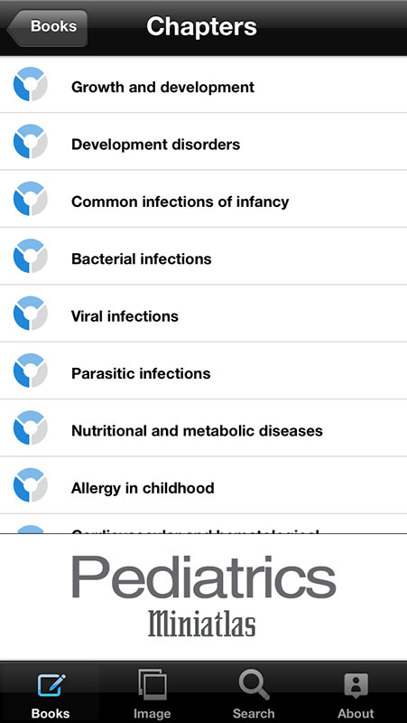 Other than this, the Miniatlas Pediatrics app is incredibly easy to navigate through. Pediatrics section opens to a list of books, including topics like Growth and Development, Common infections of infancy, Allergy in childhood, and more.