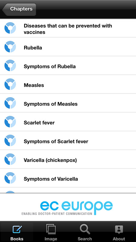 Spanish-based company ec-europe addressed this need and developed Miniatlas Pediatrics app to help facilitate the communication between healthcare providers and parents, by allowing providers to quickly and conveniently present the most common pediatric ailments and topics in form of concise text and quality illustrations.