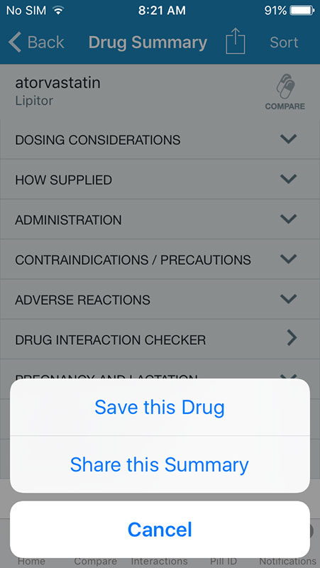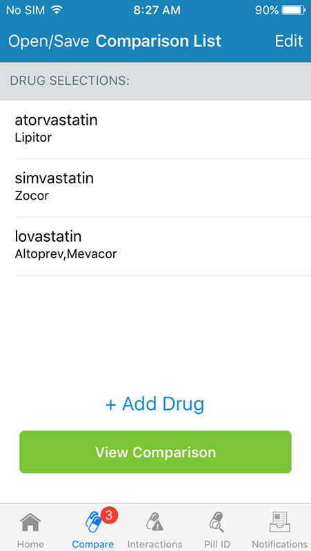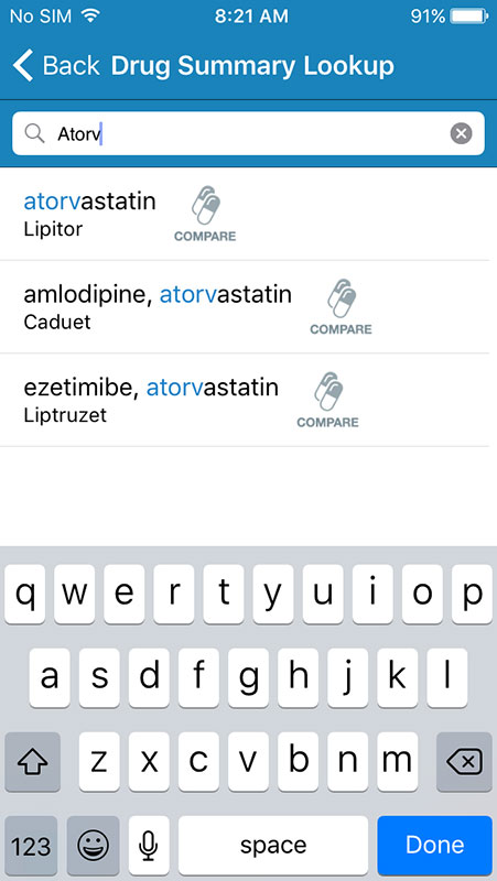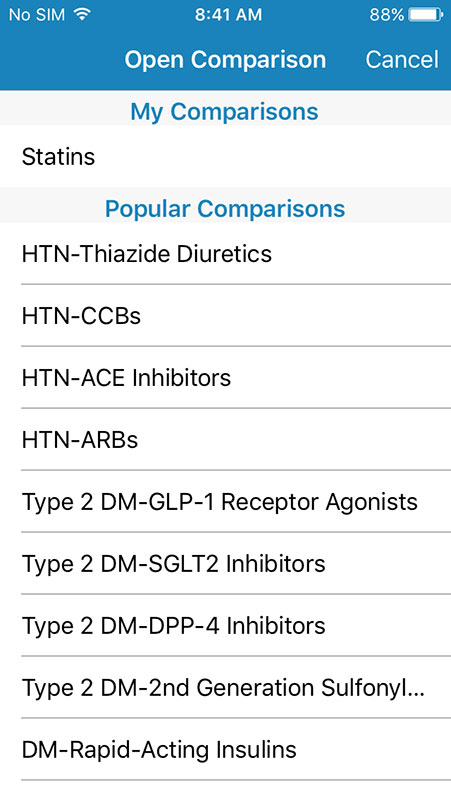 You can save drug comparisons and refer to them later, or you can browse though popular comparisons from the list that has been included in mobilePDR app.
