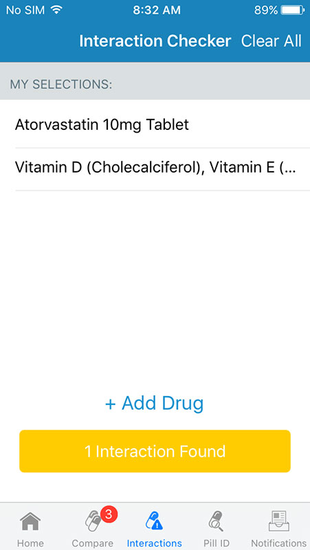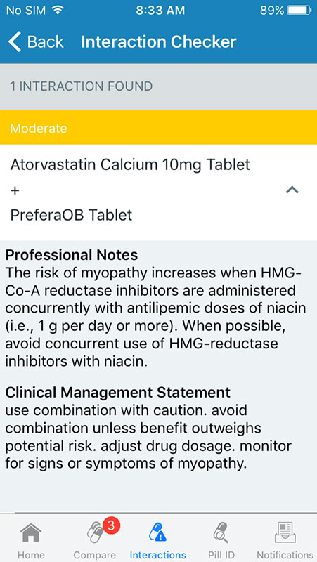 You can use this tool not only to check interactions between medications, but also to see if certain supplements may interfere with the treatment. For example, I've learned that Atorvastatin therapy could be affected if patient takes some vitamin supplements, because niacin combined with HMG-reductase inhibitors may increase the risk of myopathy