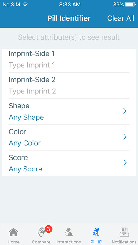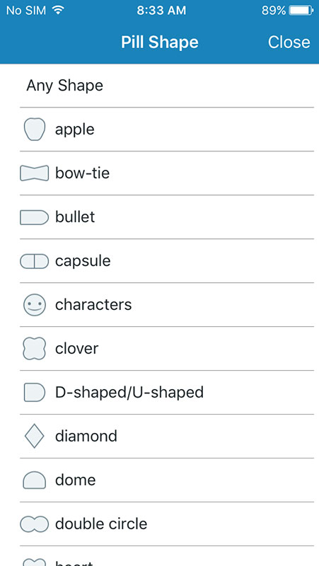 - Pill identifier results only show drug pictures, they're not linked to app's drug database