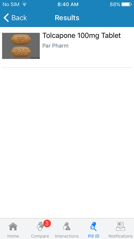 Here goes my second objection regarding this app. The results show only drug name with photo, but they do not link to the drug database for more detailed information. Instead, you need to get back on main screen and use the search tool to find the medication you just identified. It would be much better if Pill ID results link directly to app database.