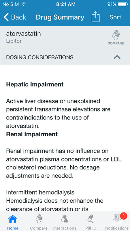 Once the medication is found, you can tap on it to get detailed drug summaries based on FDA-approved prescribing information. This information is specifically designed for use by health professionals and it include details on dosing (adult and pediatric), administration, contraindications, side effects, dosing adjustments for renal or hepatic impairment, suitability in pregnancy and lactation, mechanism of action, and so on.
