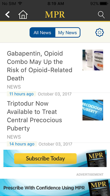 The news can be refreshed, and the users can personalize the news feed according to medical specialties of interest. Most news opens in the app with the link to the source or full text, which can sometimes require payment.