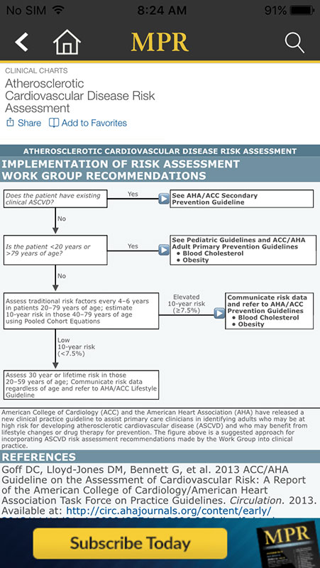 There are more than 150 charts that cover treatments, indications, risk assessments, comparisons, guidelines, and more. They're structured as tables that can be zoomed in for a better view on smaller screens. Charts can also be added to Favorites or shared via email or message.