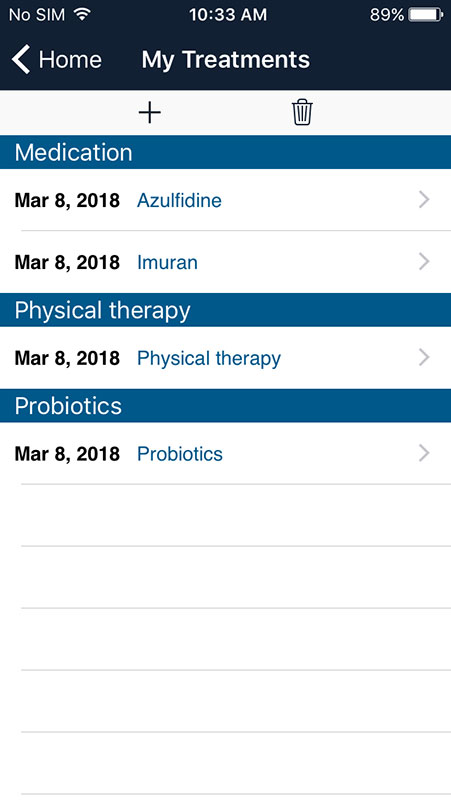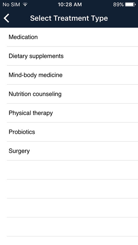 You can, however, use the app as a tracker, allowing you to monitor dosing and schedule of your treatment. You can set treatment type, by choosing from medication and dietary supplements to physical therapy and surgery.