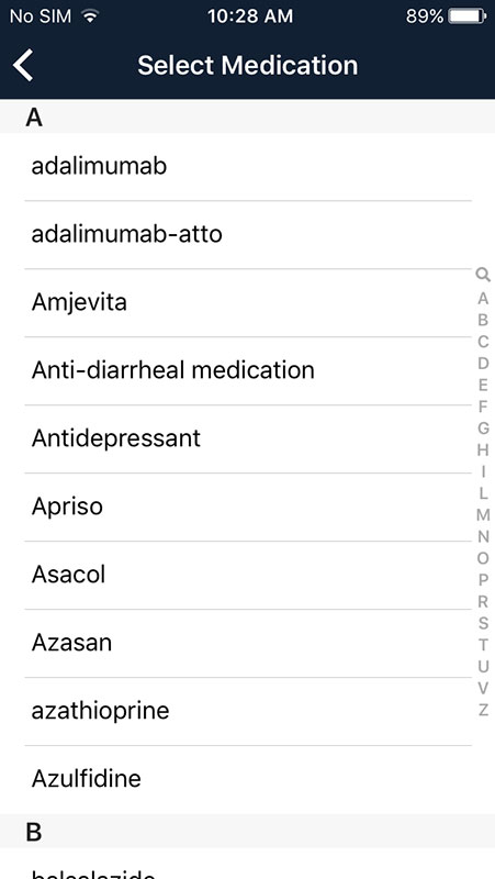 Choosing medications provides an exhaustive list of drugs (generic and brand names) used to treat IBD. The medications are listed alphabetically, from adalimumab to Humira to Zodex, but it would be much better if they're grouped by their function, such as anti-inflammatory drugs, corticosteroids, immune system suppressors, antibiotics, and so on.