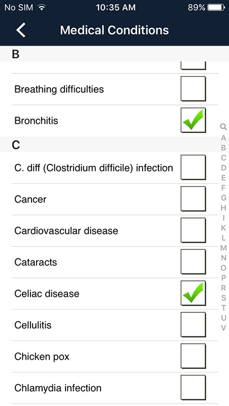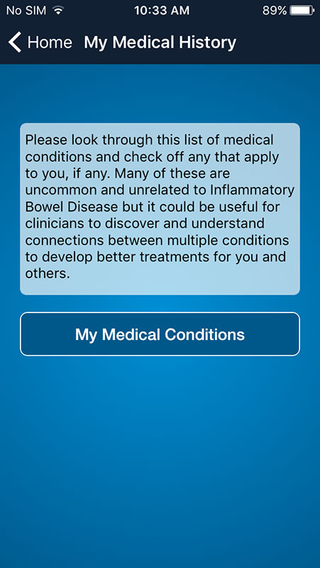 Users can add other conditions as well that may affect or interfere with their IBD, and add foods to the Food log for tracking diet and nutrition.