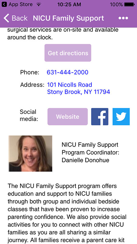 NICU Partners or NICU Family Support section utilizes user's location to provide a list of nearby hospitals with NICU. Not all locations in the US are available, but I expect that the list would be expanded in future updates.