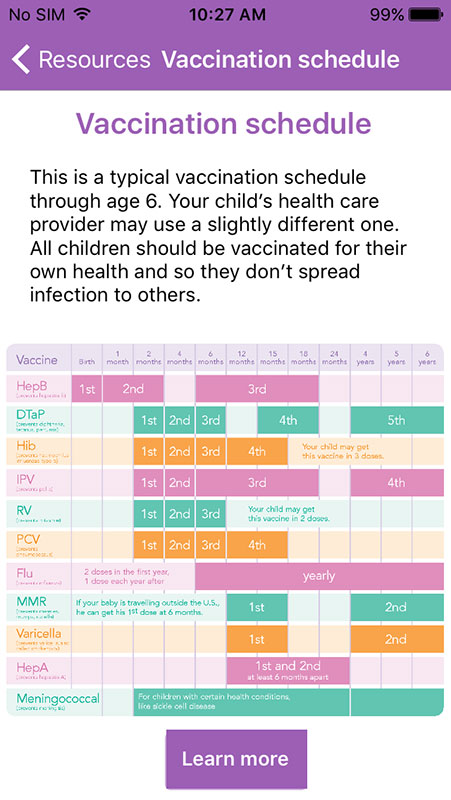 There are also checklists for going home, as well as questionnaires for medical care after NICU and follow-up visits. The app also provides vaccine schedules, however, this doesn’t look particularly well on smaller screen.
