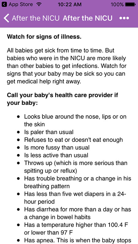 Benefit: Parent and families with an infant in the NICU would benefit from this app. NICU nurses and neonatologists, pediatricians, and any other provider who cares for infants in the NICU may use the app as well.