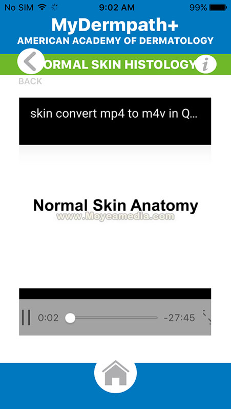 Normal Skin Histology section basically contains one video presenting and explaining normal skin histology. You cannot rotate the phone to play it horizontally, so it may be difficult to view the video on smaller screens.