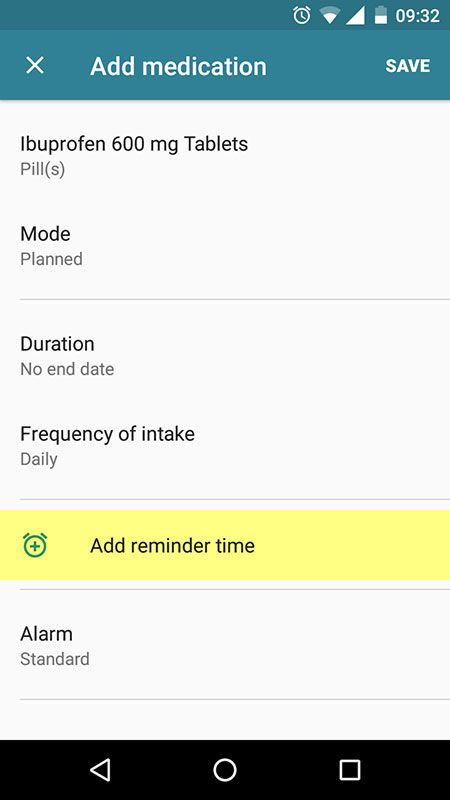 If the mode is set to 'Planned,' users can additionally set reminders by adding the duration of the treatment, frequency of intake, and reminder time.