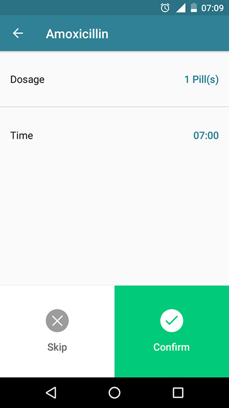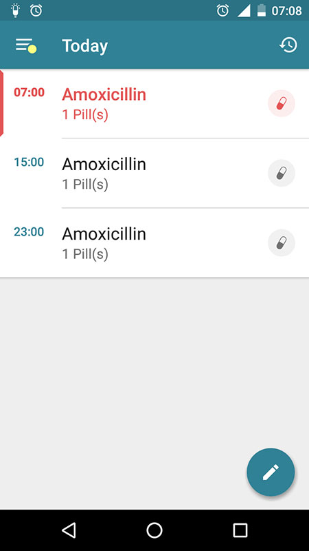 All scheduled medications will be available on Today page. Here you can view each scheduled dose, or confirm that it's been taken or skipped.