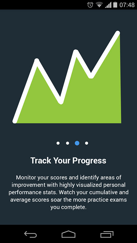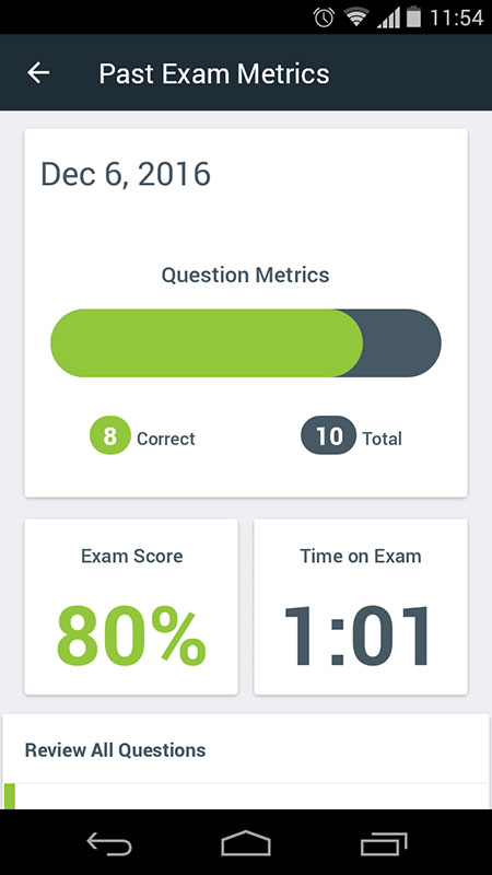 There is also another option called Exam Builder that allows users to create customized practice tests, but it requires an upgrade to premium account. You can, however, continue with the free exam here, or from the Dashboard (you'll notice it's slightly changed) by tapping on Quick 10 Questions button that will start the exam.