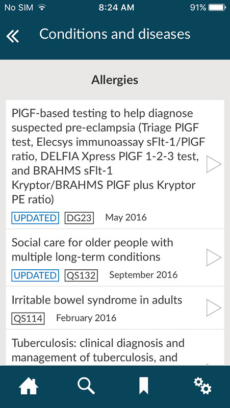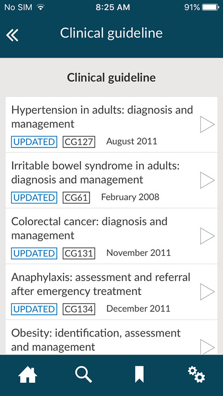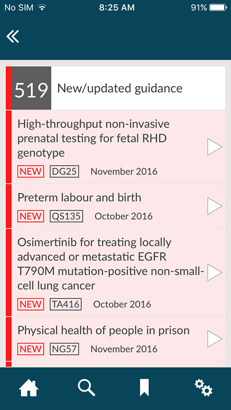 The NICE Guidance app is fast and responsive with well designed, modern interface. Search option works well and with accuracy, so you can find specific guidelines quickly, and avoid browsing through a vast amount of information.
