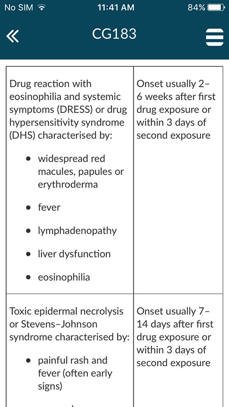 Another thing is lack of share or print options, or ability to copy certain guidelines or parts of the text. Having these options for building a 'quick reference' base or sharing info with colleagues would be very useful. But, the app can be used offline, so this isn't much of a downside.