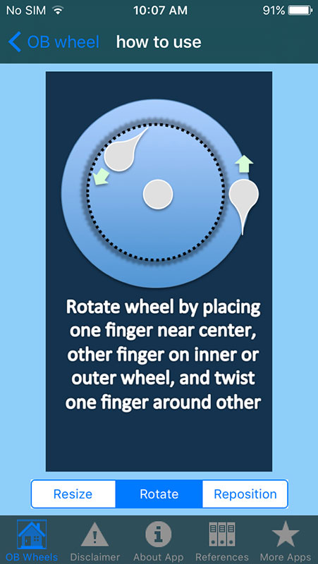 OB Wheels is a simple and straightforward app, which is easy-to-use except the traditional OB wheel, which requires some re-design in order to be more functional and less complicated. Overall, OB Wheels app is a solid, free addition to a huge family of OB/Gyn related apps.