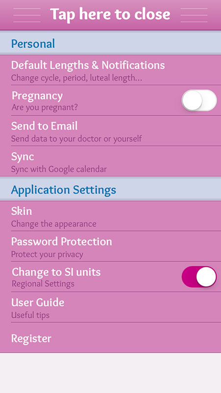 Keep in mind that Period Diary app is probably 'the pinkest' of all pink apps that use this distinctive color scheme to emphasize the feminine side of the app, that not all women like.