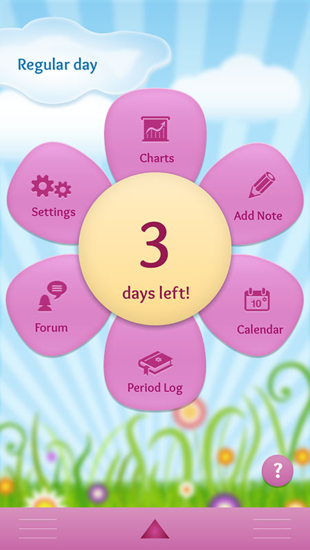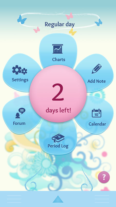 Wait, petals, pistil? What am I talking about you may ask? If you disregard the pink, Period Diary app actually has a very beautiful design that features a flower on the main screen. Pistil shows how many days are left until your next period, but until you add some data, the number here would be zero.
