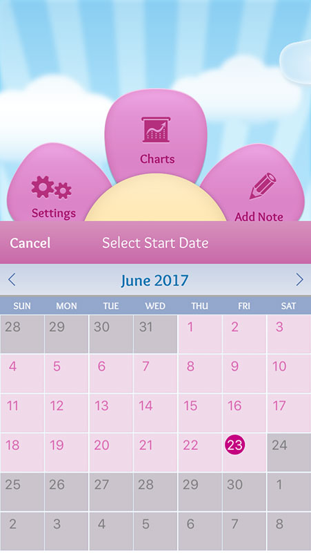 If you're not a fan of the pink, Period Diary app offers three different skins to choose from, but you'd be probably disappointed with the fact that even if you make the background and petals blue, the pistil would be pink.