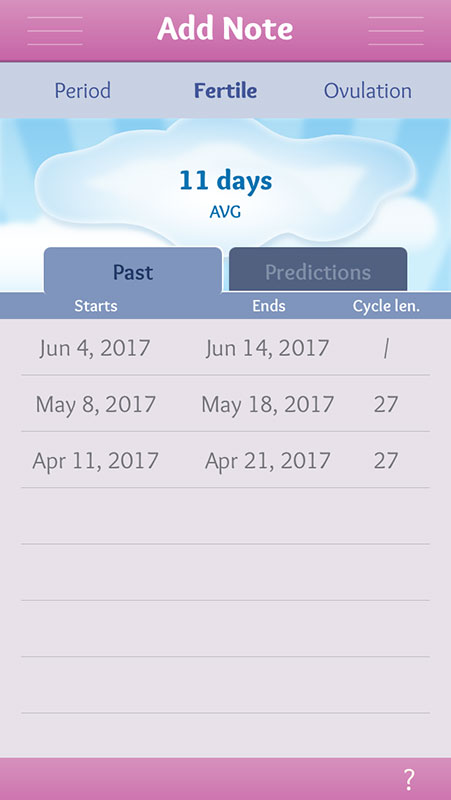 The app uses default values for cycle length, which is 28 days. But if you're cycle is shorter or longer, you can change that in the Settings. The app also allows you to set reminders that would send notifications prior to your period or fertile days.