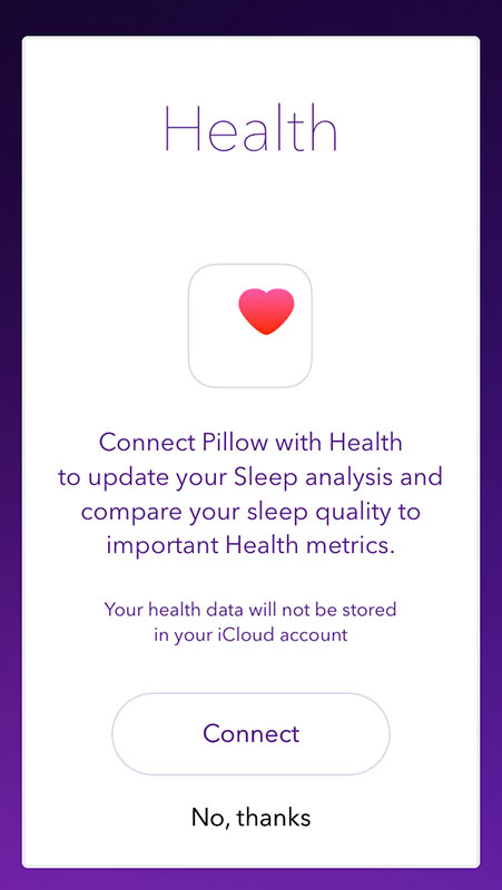 Pillow app integrates with Apple's Health app, so besides your sleep cycle data, you would also have other health metrics such as Steps, Heart Rate, Weight, etc.