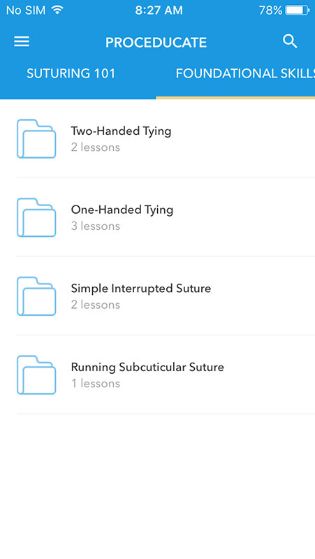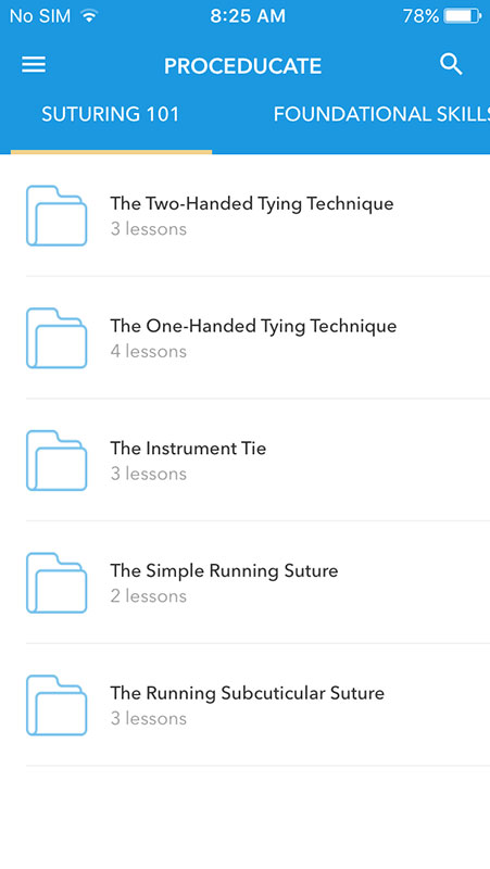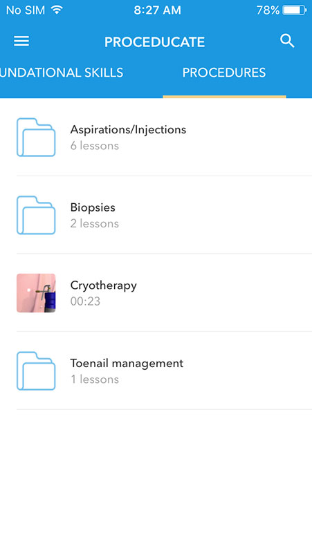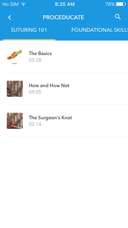Besides suturing methods, Proceducate app also includes instructional videos explaining foundational skills and some minor procedures such as joint aspiration/injection, biopsies, cryotherapy and toenail management.
