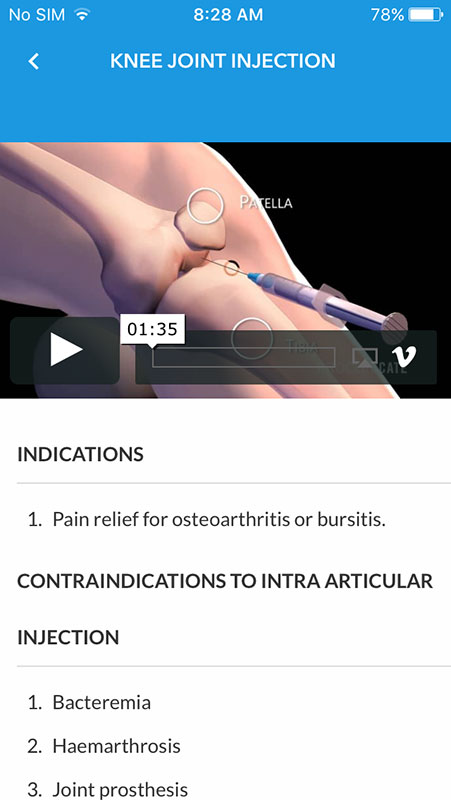 As been said, besides high quality videos of common primary care procedures each section also contains detailed and well-referenced textual information, as well as numerous quality images and animations.