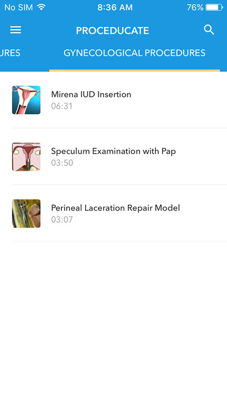 This also applies when learning about medical procedures. There are a lot of mobile apps that teach primary care providers, as well as residents and medical students about various exam techniques and procedures.