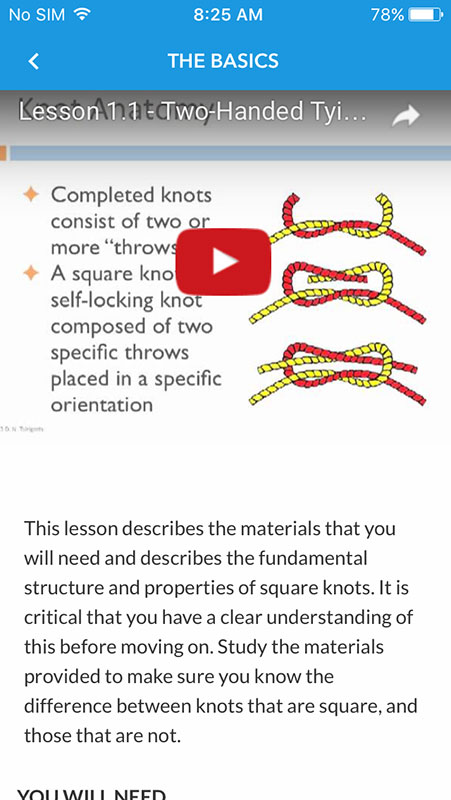For example, two-handed techniques contain three videos, including The Basics, How and How Not, and The Surgeon's Knot.