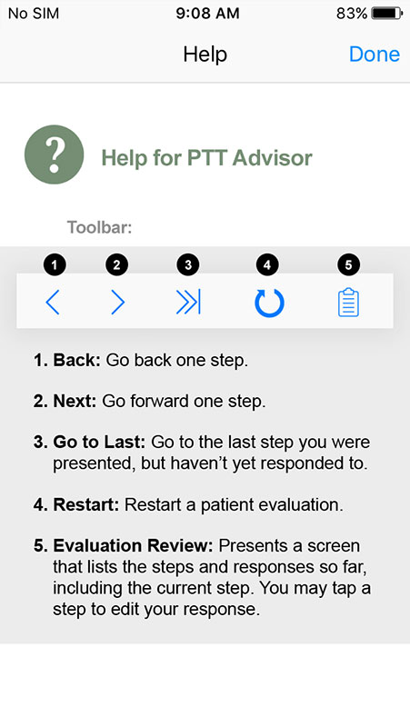 At the end of the evaluation, the users can choose to view the "Evaluation Review" feature, which is also accessible at any time, allowing users to review all the selected steps in the algorithm and quickly modify any previously completed step in the algorithm.
