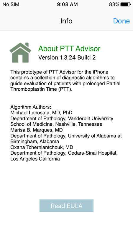 The app is an easy-to-use algorithm for diagnosing and evaluating patients with various bleeding abnormalities. It enables clinicians to quickly select the appropriate follow-up tests to evaluate patients with a prolonged partial thromboplastin time (PTT) laboratory result and a normal prothrombin time (PT) laboratory result.