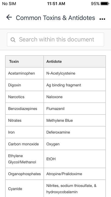 This is actually good because the purpose of the app is to be a quick, pocket reference that provides easy-to-follow information in often hectic EM setting.