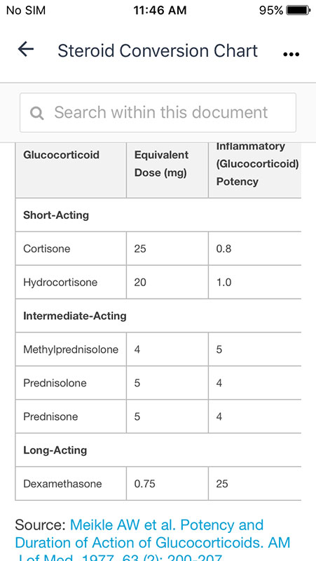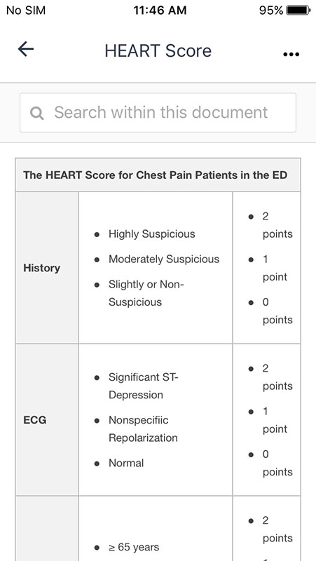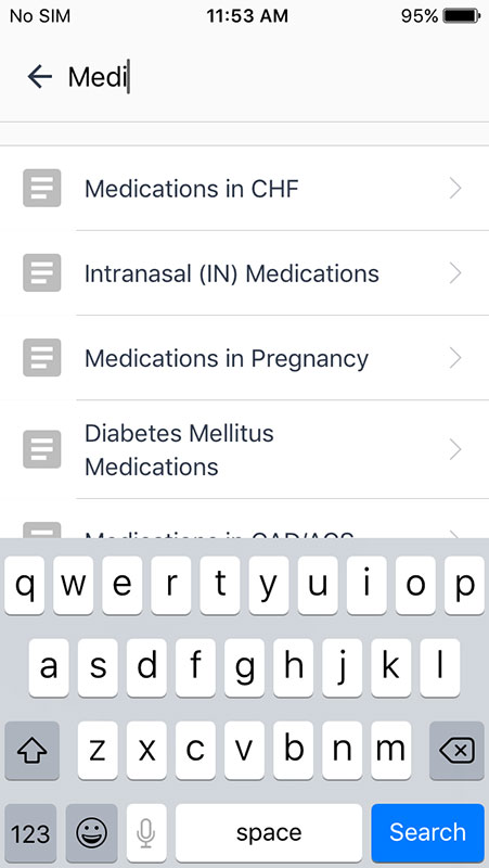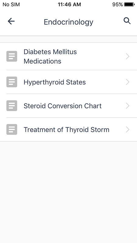 The app also allows providers to check many other topics for other specialties, such as steroid conversion chart, the safety of particular medications in pregnancy, contraindications to thrombolytic drugs, an algorithm for vascular injuries, and many more.