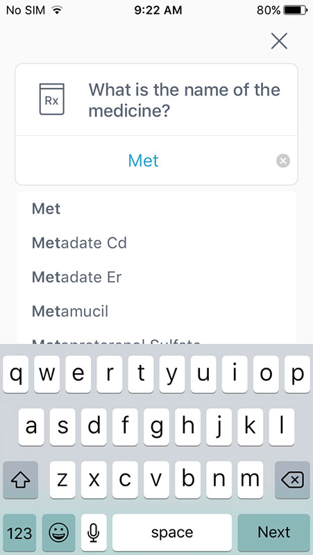 Adding new medication is pretty straightforward. Just start typing a drug name in the search field and the auto-complete would finish the rest, meaning it would populate the drop down list as you type. For this review I decided to add two medications, first was Metformin, a diabetes drug, and another was NSAID Ibuprofen.
