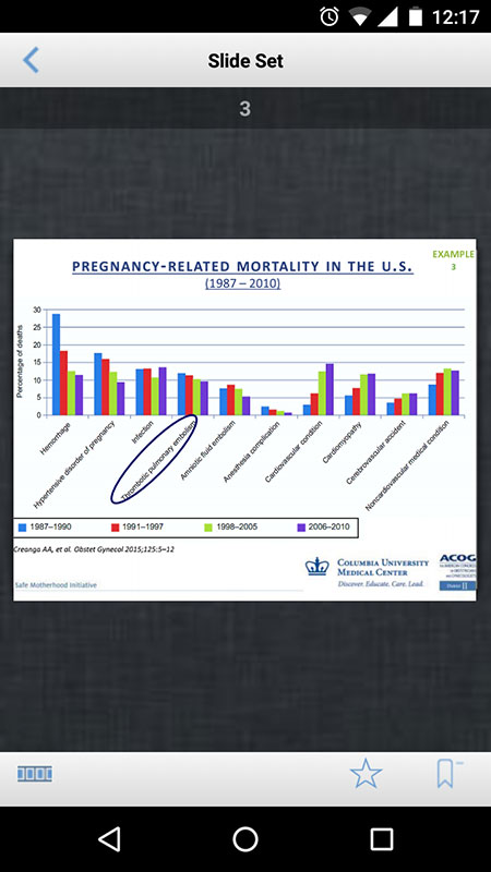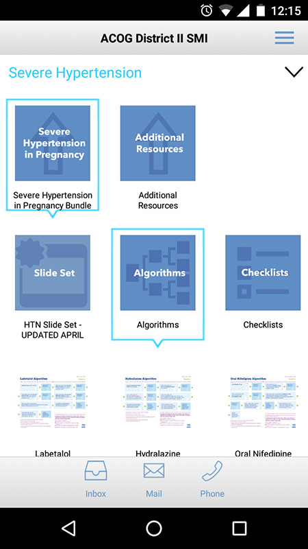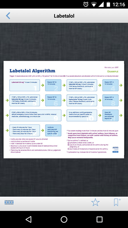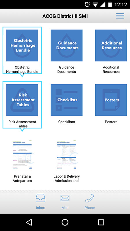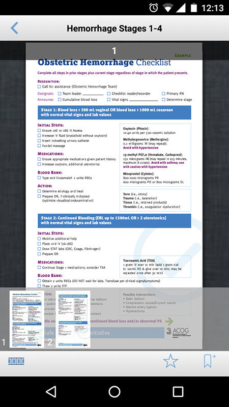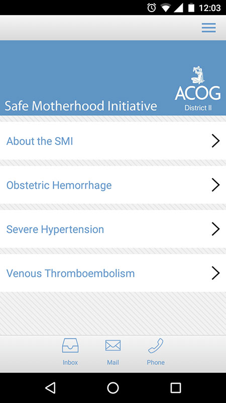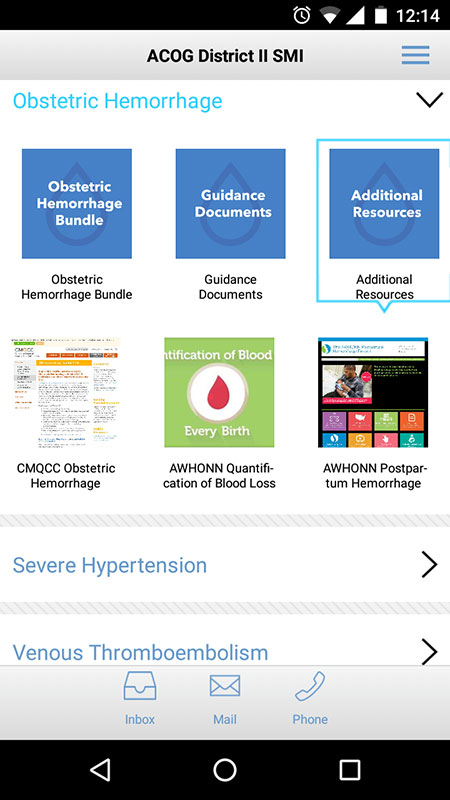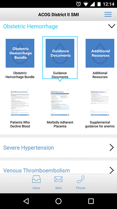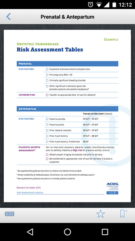 The app compiles the most current evidence-based recommendations from ACOG on the 3 most common causes of maternal mortality, including obstetric hemorrhage, severe hypertension in pregnancy, and venous thromboembolism, bringing them into one resource that can be used at the point of care, i.e. during prenatal visits and in the labor room.