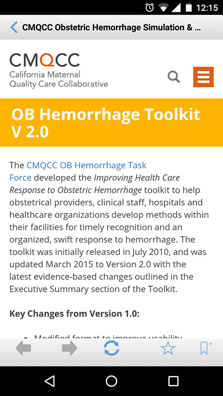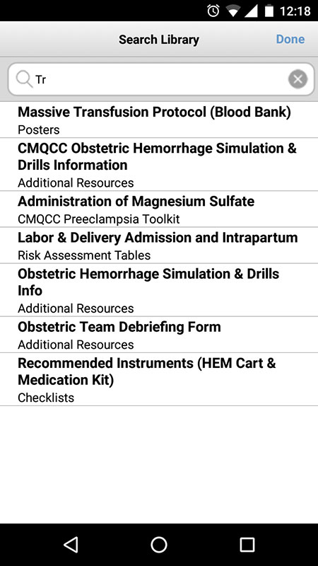 The information in the bundles includes risk assessment tables, checklists, algorithms, educational slides, expert guidance documents, case scenarios, videos, and additional resources, all targeted at the top 3 most common causes of maternal mortality. The information in the app is supported by evidence-based medicine, clinical practice guidelines and standard of care medical practice.