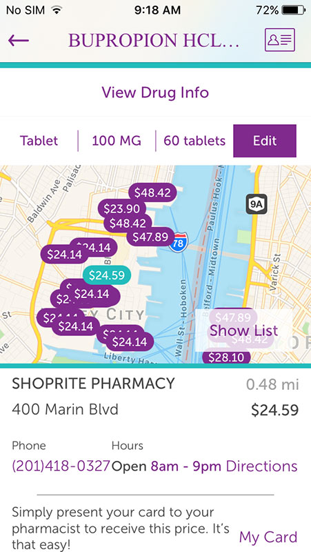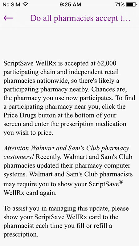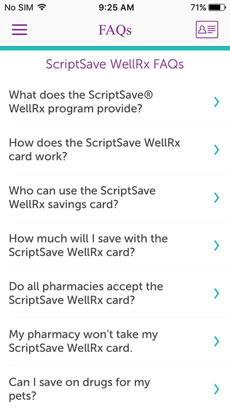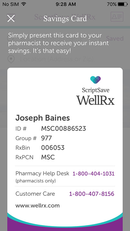 This is one of the highlights of this app, since you don't have to carry an actual card in your wallet. Your phone is probably with you all the time and all you have to do is to show ScriptSave WellRx savings card to your pharmacist.