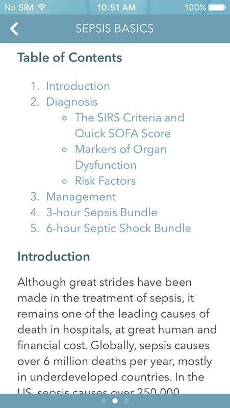 With this purpose, Escavo made the Sepsis Clinical Guide app that we reviewed on SteadyHealth, which is a comprehensive reference on sepsis diagnosis and management for mobile devices.